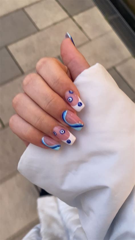 - Pastel nails with an evil eye define
