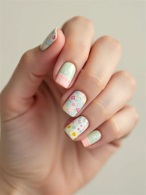 Have a good time the arrival of spring with a fragile floral design that includes comfortable pastel hues. Begin with a base coat of pale pink or lavender. Then, utilizing a skinny nail brush, create small flower petals in varied shades of yellow, blue, and inexperienced. You possibly can add some sparkle by topping every flower with a tiny dot of glitter polish.