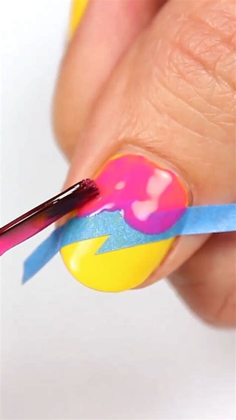 - Create a French manicure with a twist by utilizing completely different colours of tape.