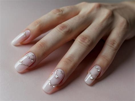 For a contact of delicate sophistication, adorn a single nail with a fragile rhinestone. Go for a transparent rhinestone on a nude or sheer base shade for a timeless and chic look. Alternatively, add a pop of shade with a small gemstone in a contrasting hue.