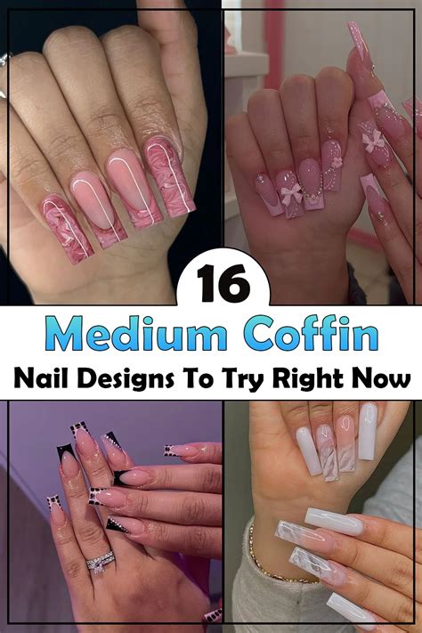 - There are a lot of standard designs for medium coffin nails, together with French suggestions, ombre, and glitter. You can too create your individual distinctive designs utilizing nail artwork provides.