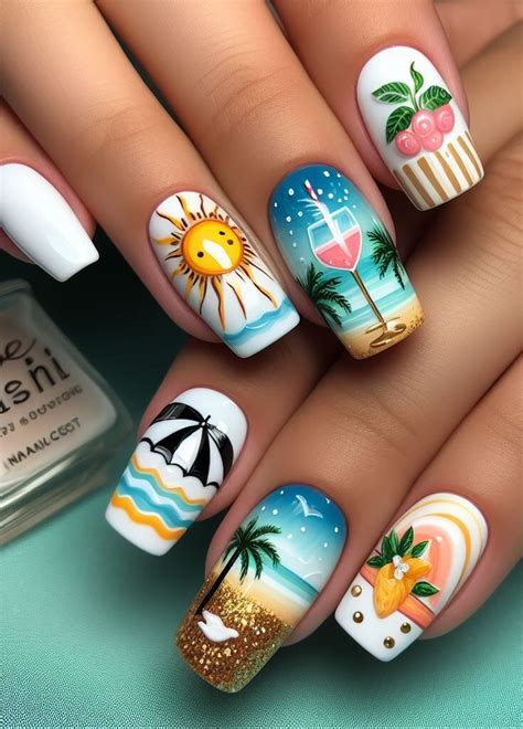 - Nail artwork impressed by tropical locations, comparable to palm bushes, sunsets, and ocean waves.