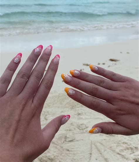 Harness the heat of a spring break dawn with a hibiscus nail artwork representing the transition from day to nighttime. Gradient your nails from a gentle pink to a vibrant orange, and add a white hibiscus with golden accents to represent the blooming hibiscus because the solar rises.